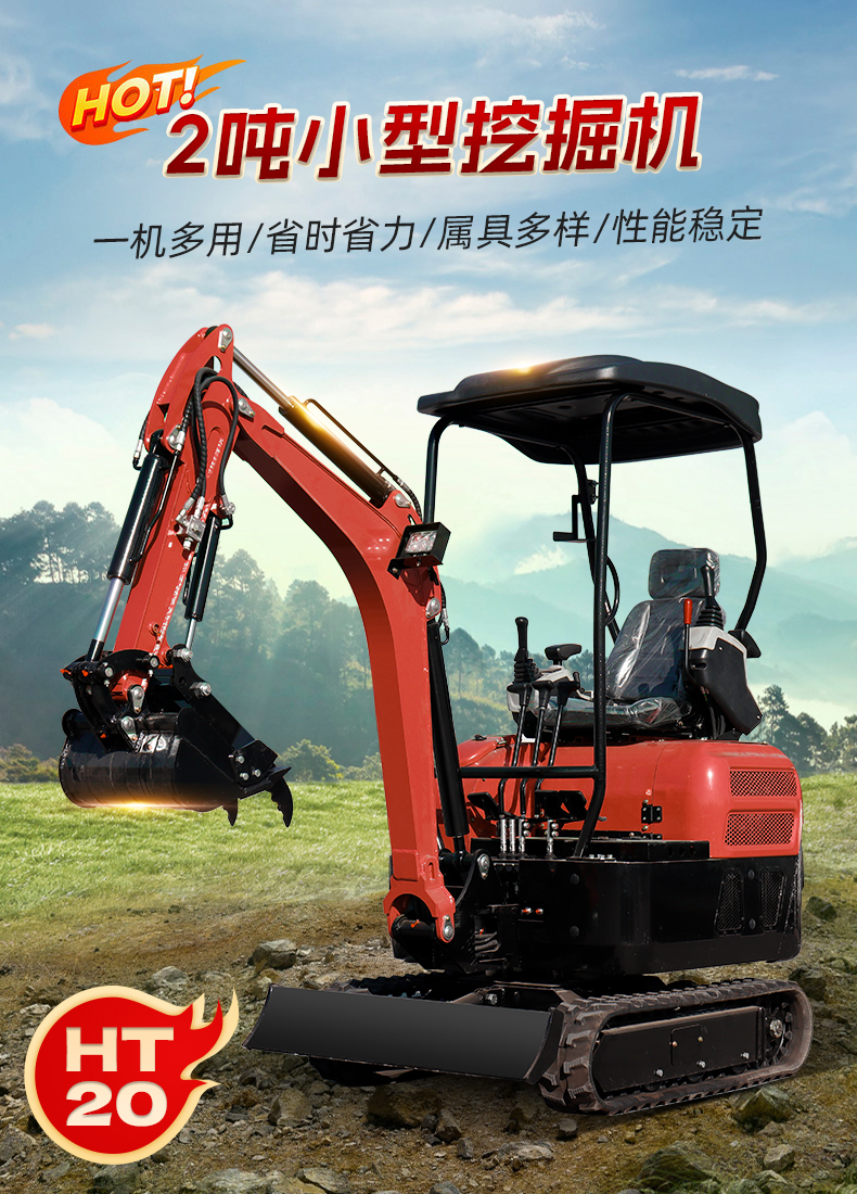 復(fù)雜工況(如山地開荒、破碎作業(yè) ):對動力和屬具兼容性要求高。海拓 HT18 挖掘機,配備品牌發(fā)動機,動力強勁,支持 30 + 種屬具(如破碎錘、松土器 ),應(yīng)對破碎、挖掘、抓舉等多場景作業(yè);HT20 作為 2 噸級機型,大臂油缸倒立設(shè)計增加挖掘深度,屬具多樣,也適配復(fù)雜工況。