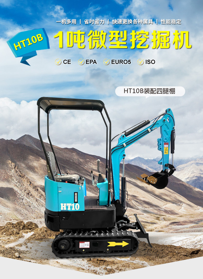 重量與斗容量:直接關(guān)聯(lián)作業(yè)效率和適用場景。HT10 重量 1000kg、斗容量 0.025m3,適合輕量作業(yè);HT15 重量 1500kg、斗容量 0.03m3,效率更優(yōu);HT18 重量 1800kg、斗容量 0.03m3,動力輸出更強;HT20 重量 2000kg、斗容量 0.02m3,挖掘深度等參數(shù)更突出。