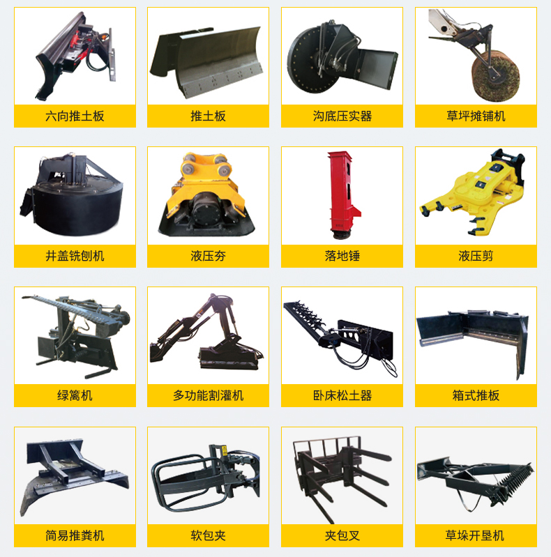 ④ 農(nóng)林畜牧類:抓草斗、移樹機、碎木機、推糞機;