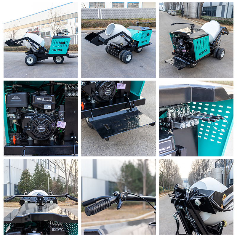 HT-800 的機(jī)身尺寸僅為2800×1250×1350mm,相當(dāng)于一輛小型三輪車的占地空間,農(nóng)村小院、樓道天井、大棚角落等狹窄場地都能輕松進(jìn)駐,10 平米就能完成 “投料 - 攪拌 - 出料” 全流程。搭配牽引輪設(shè)計(jì),人工即可推動轉(zhuǎn)場,市政路面修補(bǔ)、鄉(xiāng)村道路養(yǎng)護(hù)時(shí),直接拉到作業(yè)點(diǎn)就地?cái)嚢?,告別 “混凝土長距離運(yùn)輸離析” 的問題。