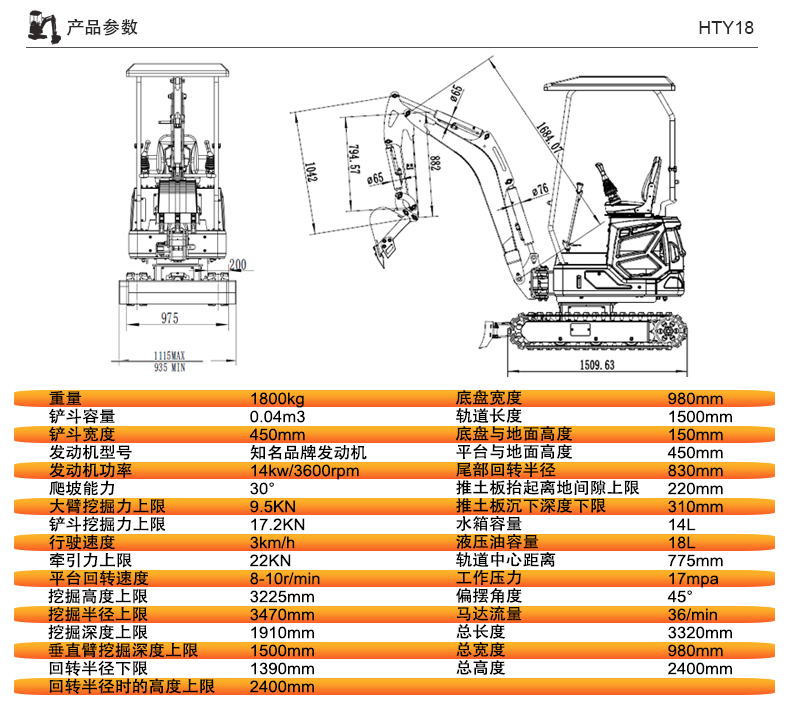 鏟斗最大挖掘力:17.2 千牛