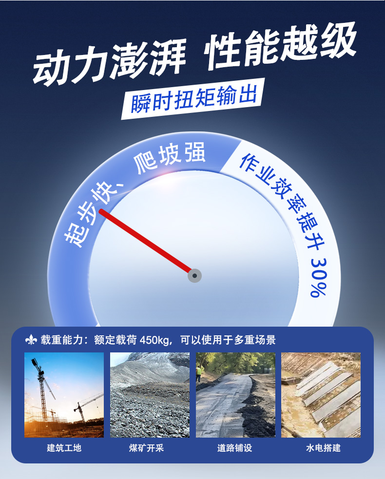瞬時(shí)扭矩輸出:起步快、爬坡強(qiáng),作業(yè)效率提升 30%