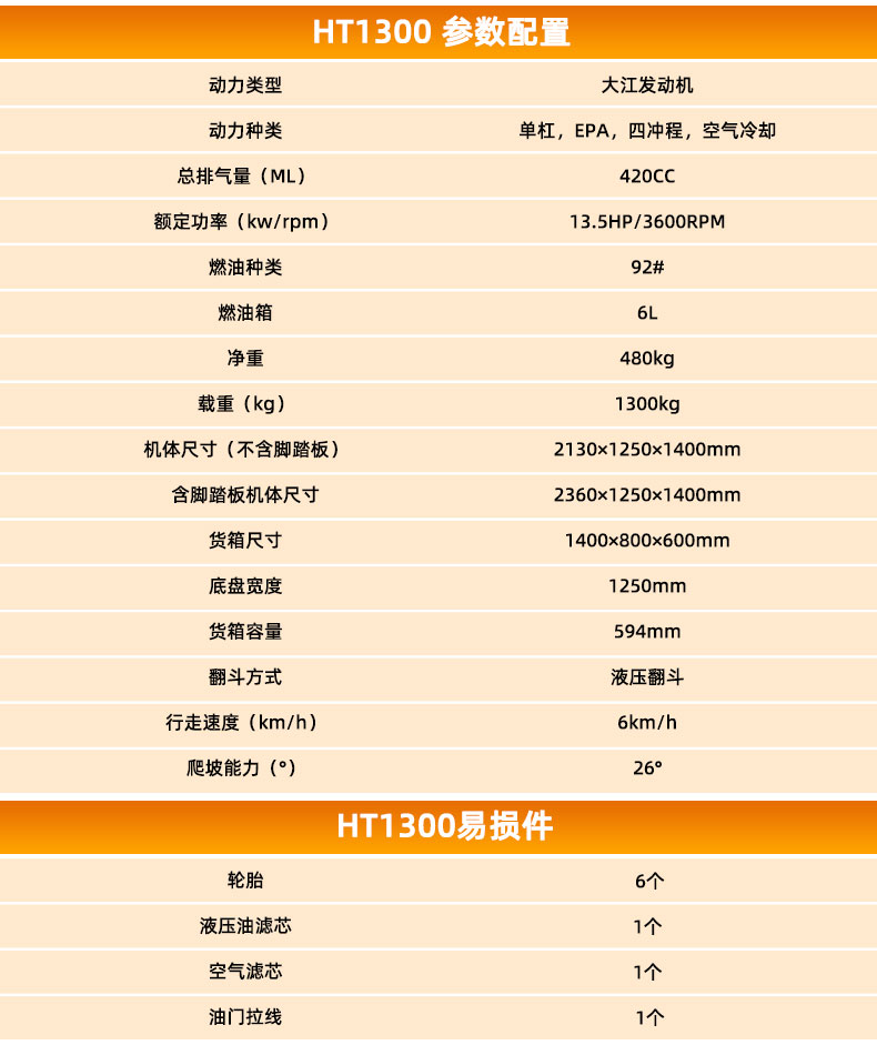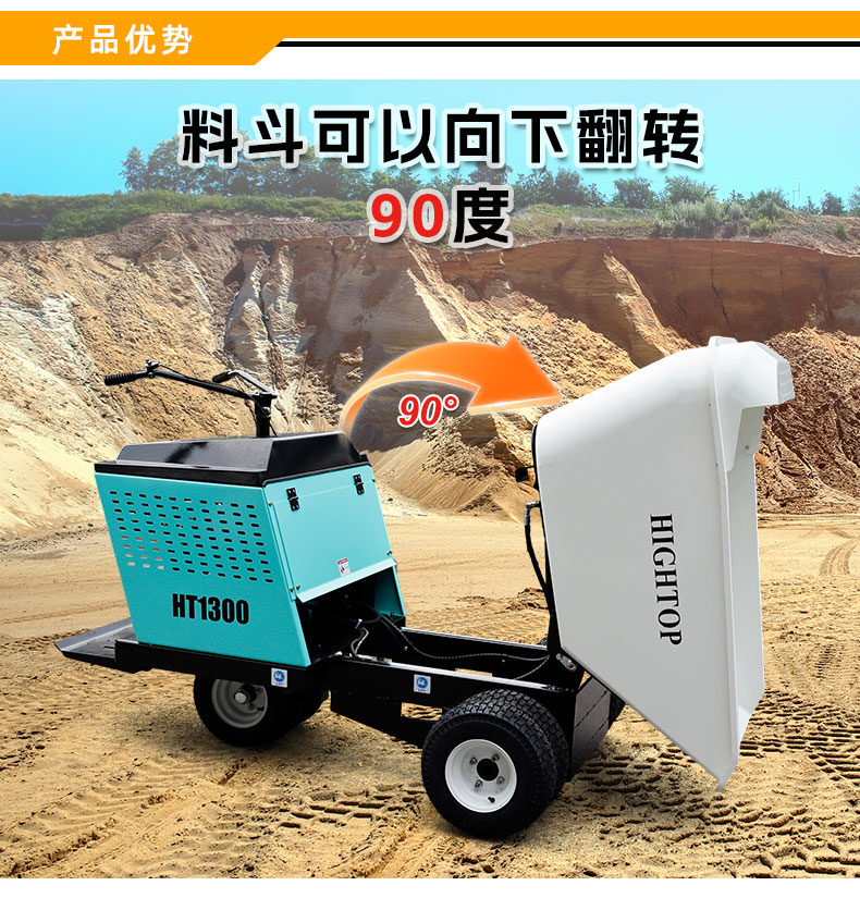 HT1300 多功能翻斗車主要適用于工地水泥石灰、農(nóng)場(chǎng)飼料運(yùn)輸、農(nóng)業(yè)肥料運(yùn)輸、工廠車間倉(cāng)庫(kù)。