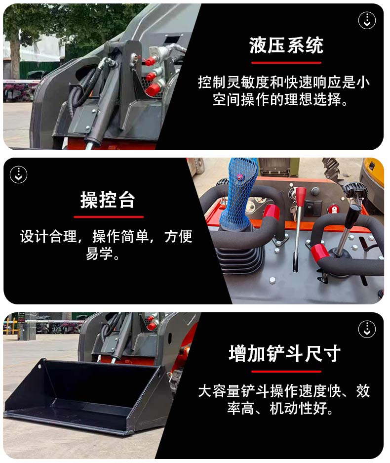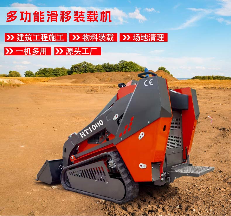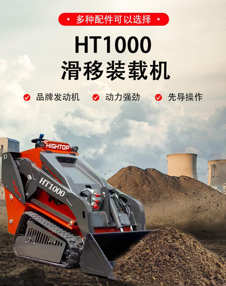 HT1000滑移裝載機以硬核參數(shù)打造高效作業(yè)體驗,搭載0.14m3容積鏟斗,配合1100kg的強勁傾翻能力與475kg裝載重量,輕松應(yīng)對中小型裝載、轉(zhuǎn)運需求。其鏟斗最大舉升高度達2719mm,最大卸料高度1610mm、卸料距離605mm,45°的最大卸料角度確保物料排空徹底無殘留,無論是工地砂石轉(zhuǎn)運還是廠房物料整理,都能實現(xiàn)“舉得高、卸得凈、效率高”的作業(yè)效果。