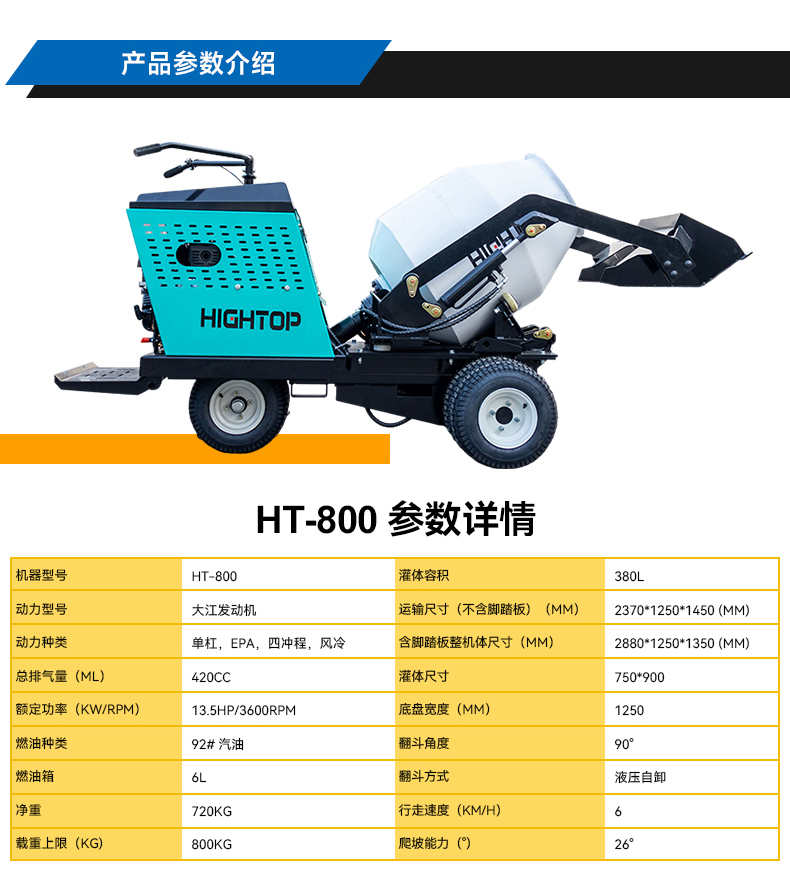 HT-800 迷你輪式水泥攪拌車產(chǎn)品特點(diǎn)