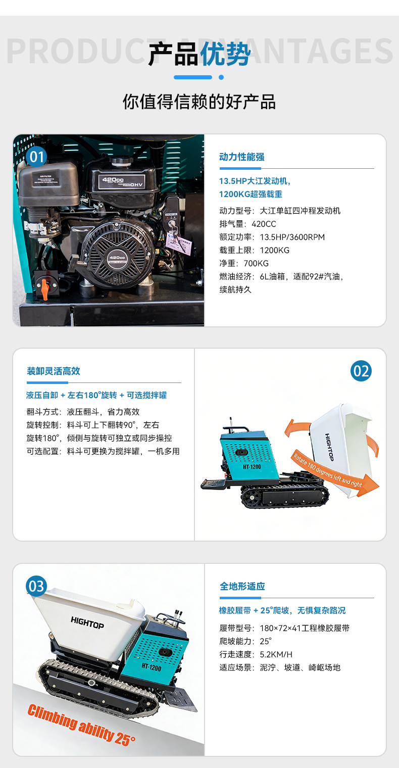 1. 核心動(dòng)力:13.5HP強(qiáng)勁引擎,1200KG輕松載