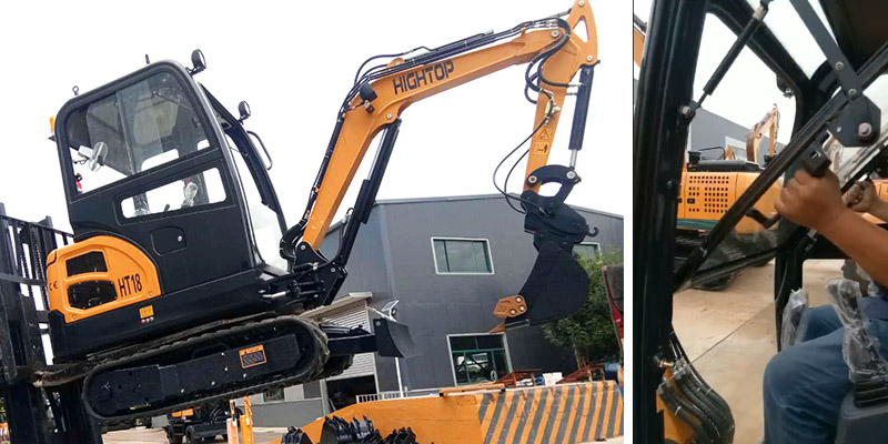 此次發(fā)貨的微型挖掘機型號為HT18,帶駕駛室,配備常柴發(fā)動機,伸縮底盤,動臂偏轉(zhuǎn),無尾旋轉(zhuǎn)等。
