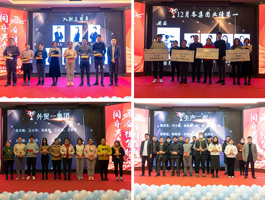 集團(tuán)領(lǐng)導(dǎo)為員工頒發(fā)沖刺獎(jiǎng)、年終獎(jiǎng),卓越貢獻(xiàn)獎(jiǎng)等獎(jiǎng)項(xiàng)