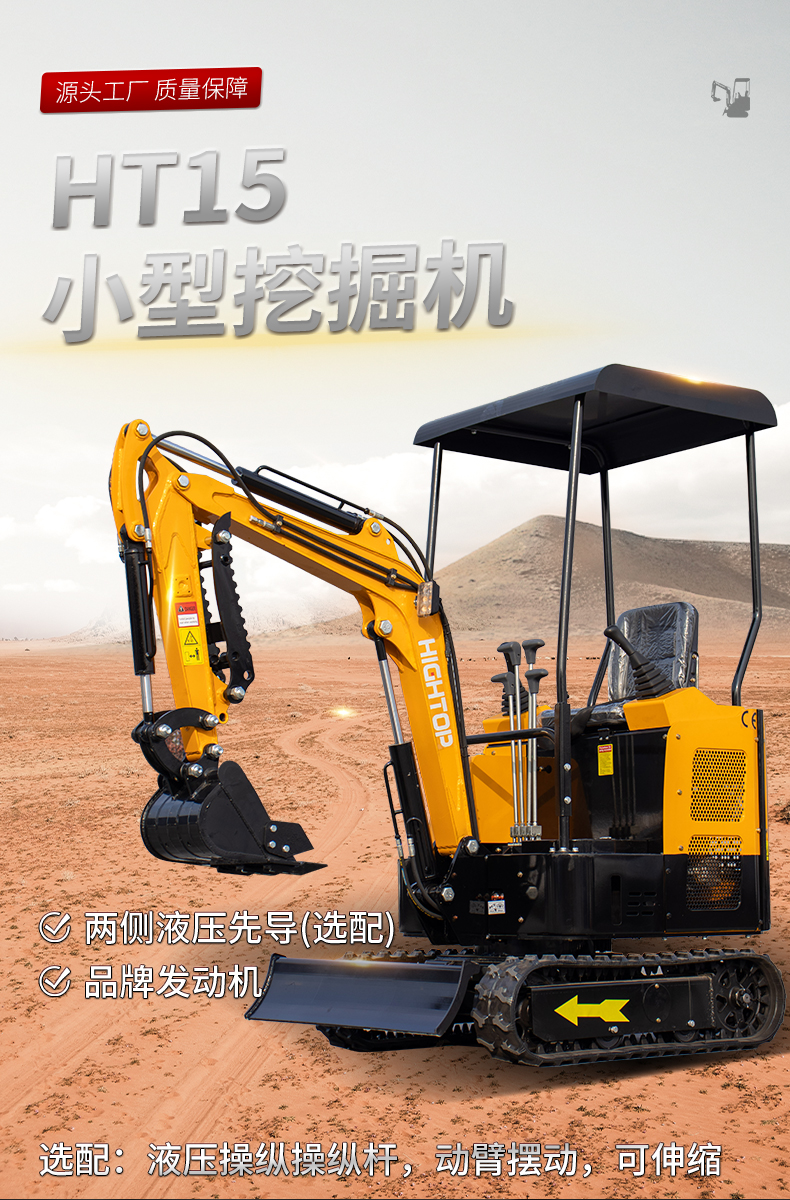 常規(guī)土石方、農(nóng)田作業(yè):需兼顧效率與通用性,海拓 HT15 小型挖掘機其1500kg 整機重量,斗容量 0.03m3,能滿足基礎(chǔ)挖填、農(nóng)田平整等需求,360° 旋轉(zhuǎn) + 兩側(cè)液壓先導(dǎo)操作,作業(yè)靈活快速。